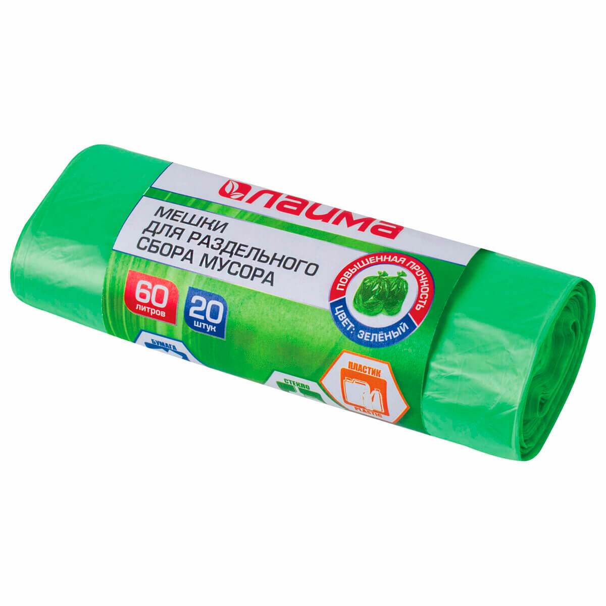 Сделайте раздельный сбор мусора проще с мешками ЛАЙМА! Экологичные зеленые мешки вместимостью 60 литров помогут вам сортировать бытовые отходы. Ваши усилия важны для чистоты нашей планеты!