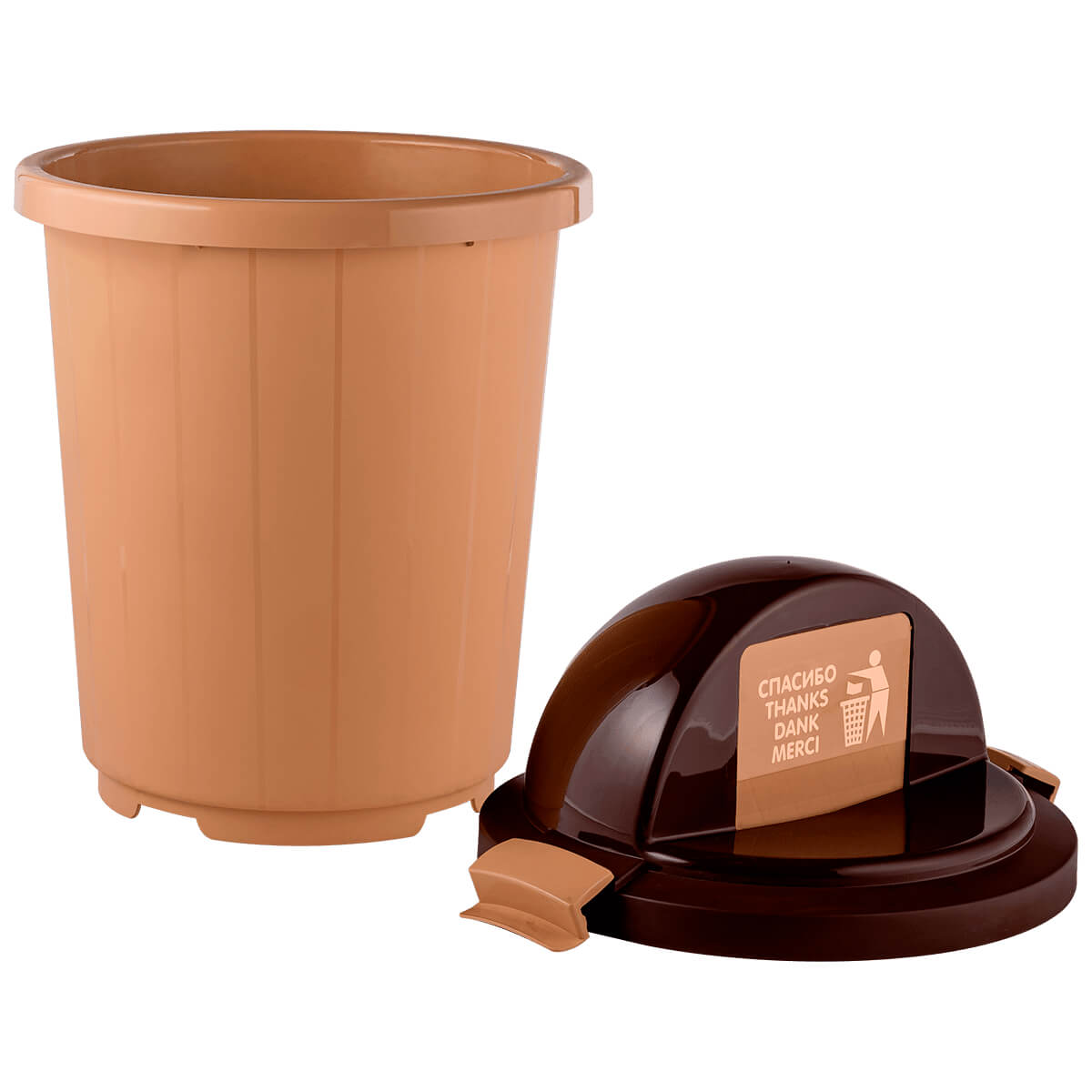 Выберите бежевый мусорный бак с крышкой-клавишей на колесах для эффективного управления отходами с легкостью и стилем в вашем доме, офисе или любом другом пространстве.