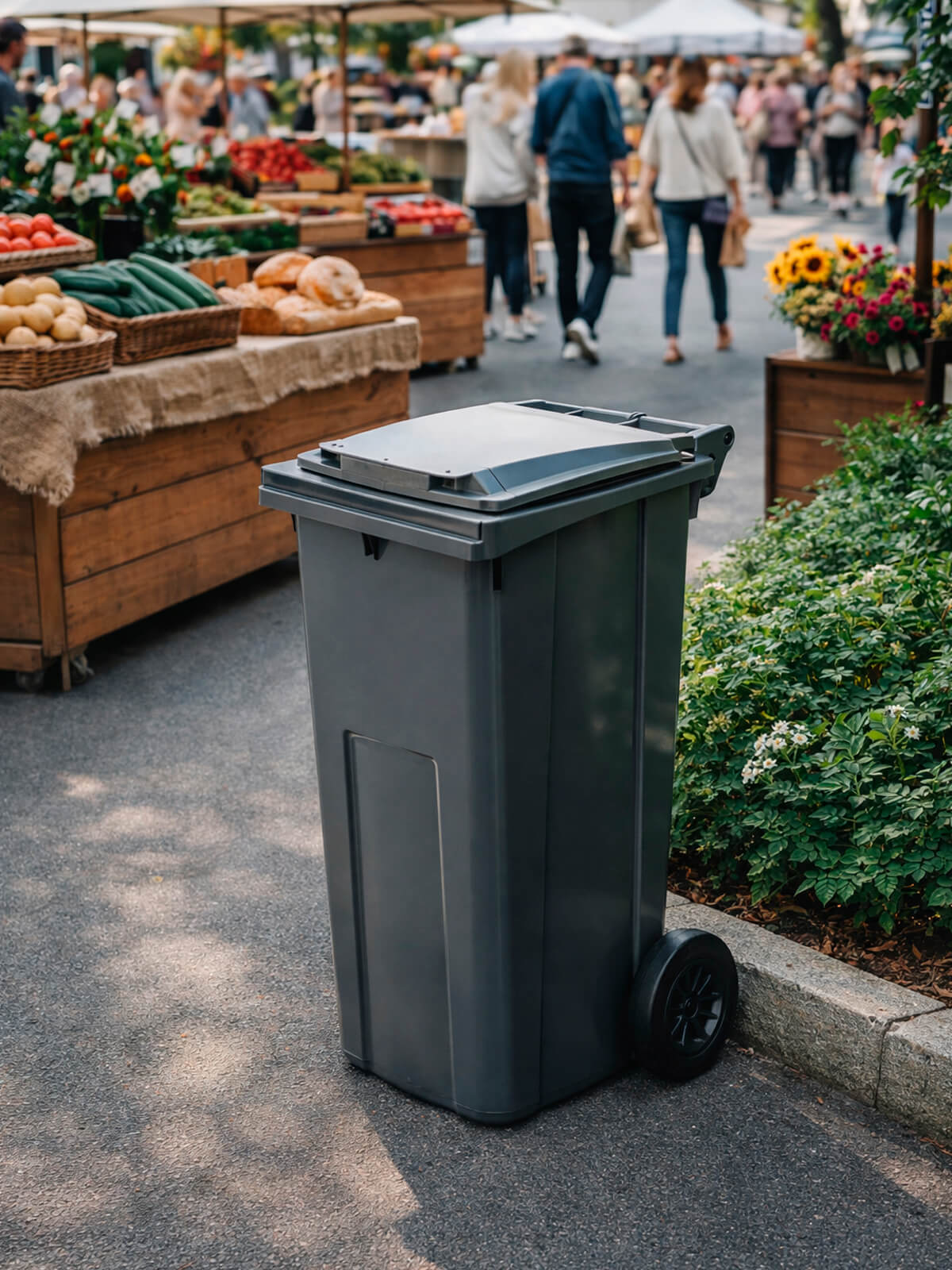 Серый контейнер для мусора 120 л — практичное решение для домовладений, дворов многоквартирных домов, ТСЖ, предприятий и муниципальных объектов. Нейтральный серый цвет традиционно используется для смешанных и твёрдых бытовых отходов, поэтому такой мусорный контейнер уличный идеально подходит для городских дворов и коммерческих объектов.