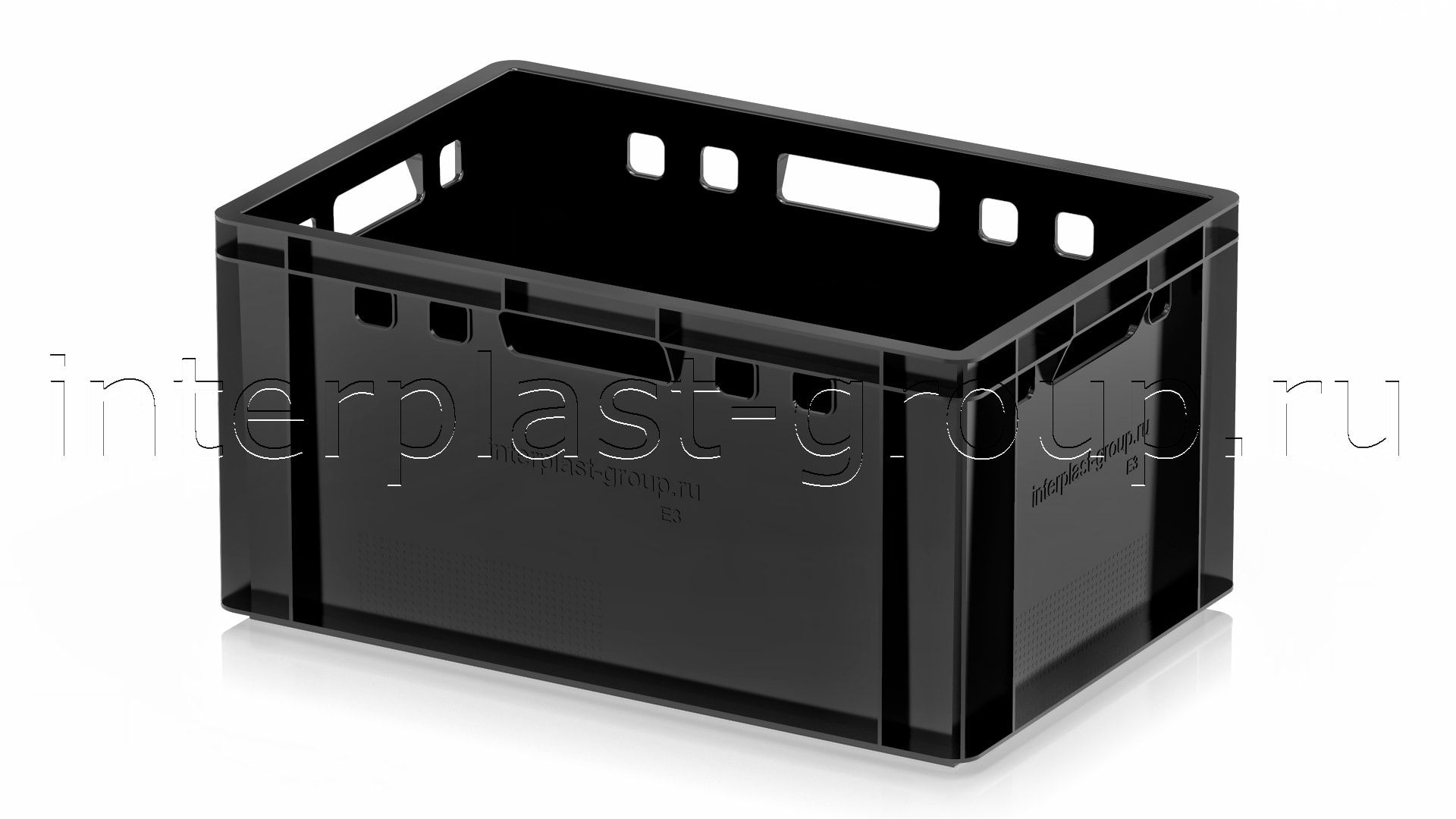 Ящик для мяса Е3 это третий по размеру в линейке мясных ящиков. Разработан специально для использования в мясной промышленности. Отлично штабелируется и собирается в единый сет со всеми ящиками серии. Изготовлен из первичного полиэтилена, и адаптирован для хранения в холодильных и морозильных камерах.