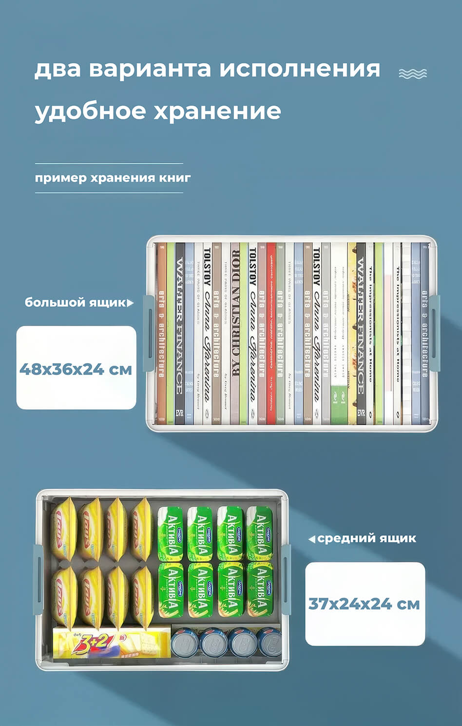 Складной ящик 370х240х240 мм, бело-синий – удобное и стильное решение для хранения