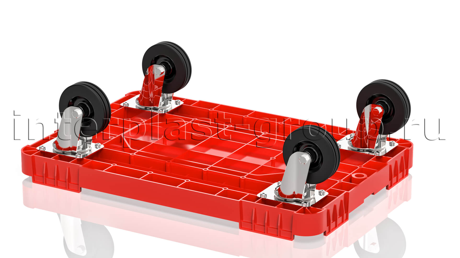 Тележка пластиковая сплошная без тормозов красная в Новороссийске