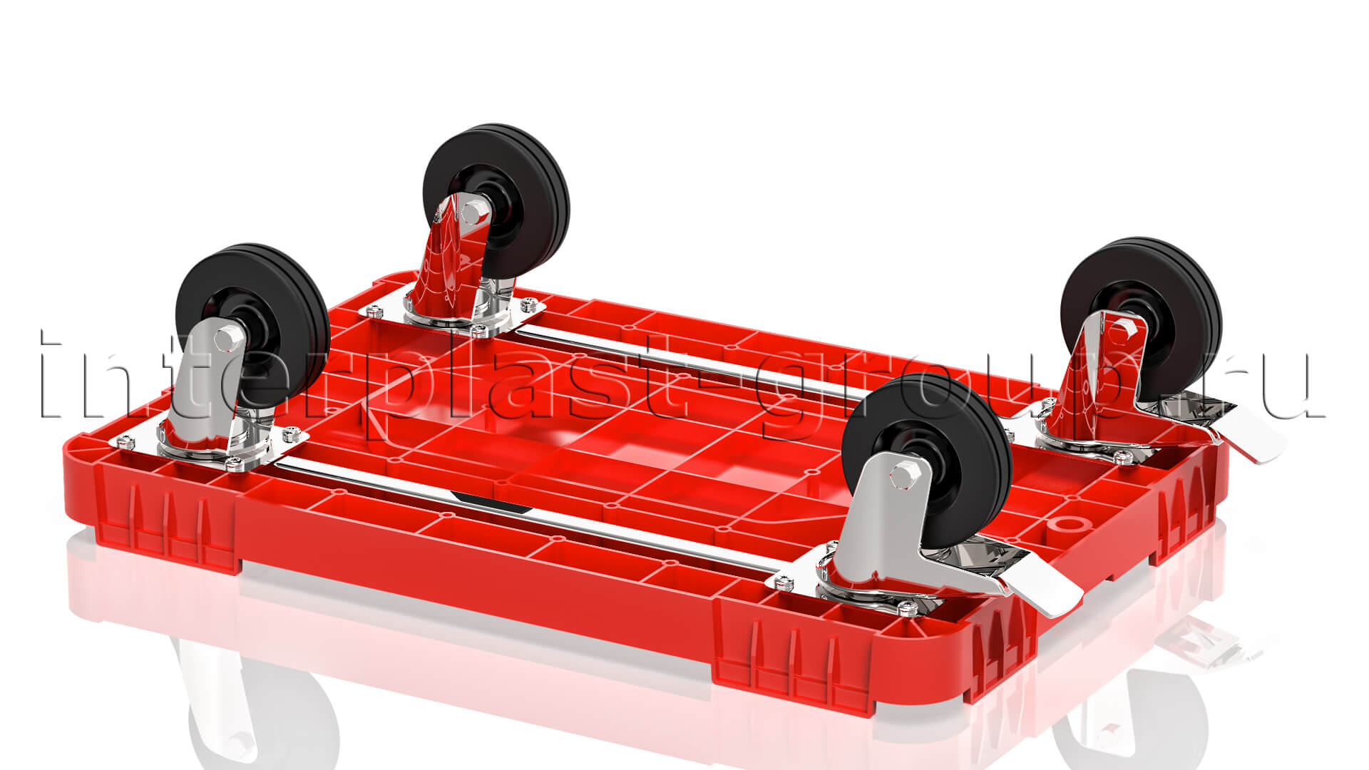 Тележка пластиковая сплошная 2 колеса с тормозом усиленная красная