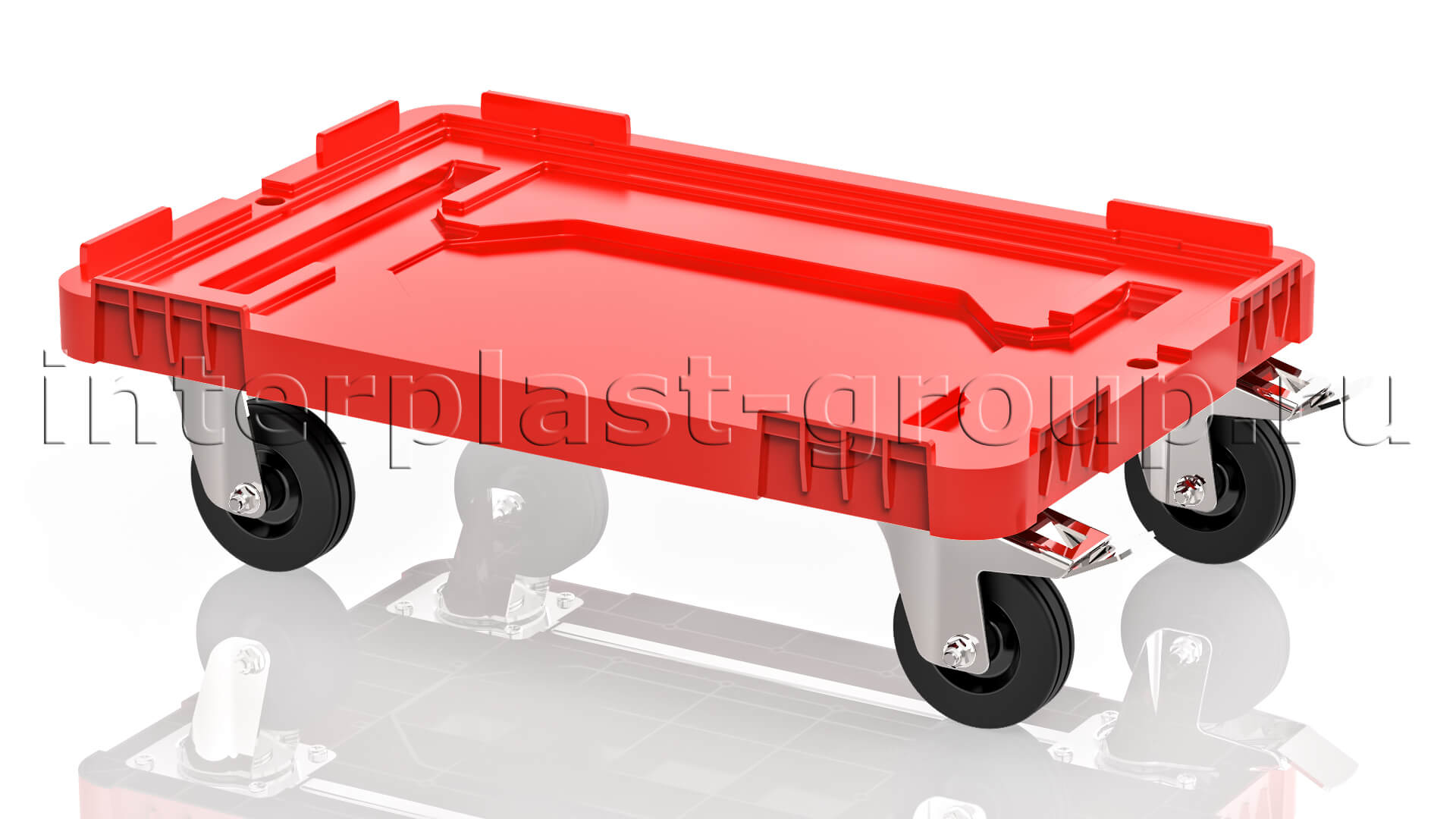Конструкция тележки разработана с особым акцентом на прочность и надежность. Она сплошная и имеет усиленное место для захвата, позволяющее удобно манипулировать тележкой крючком. Большое количество ребер жесткости обеспечивает ей допустимую статическую и динамическую нагрузку до впечатляющих 300 кг.