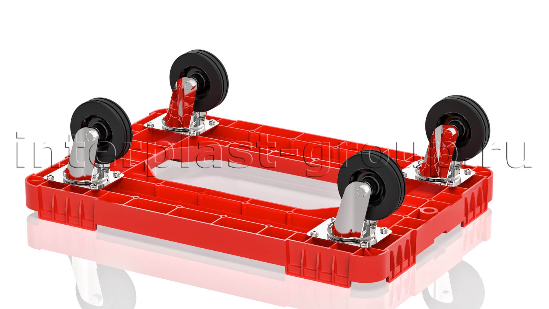 Тележка пластиковая с отверстием без тормозов красная в Новороссийске