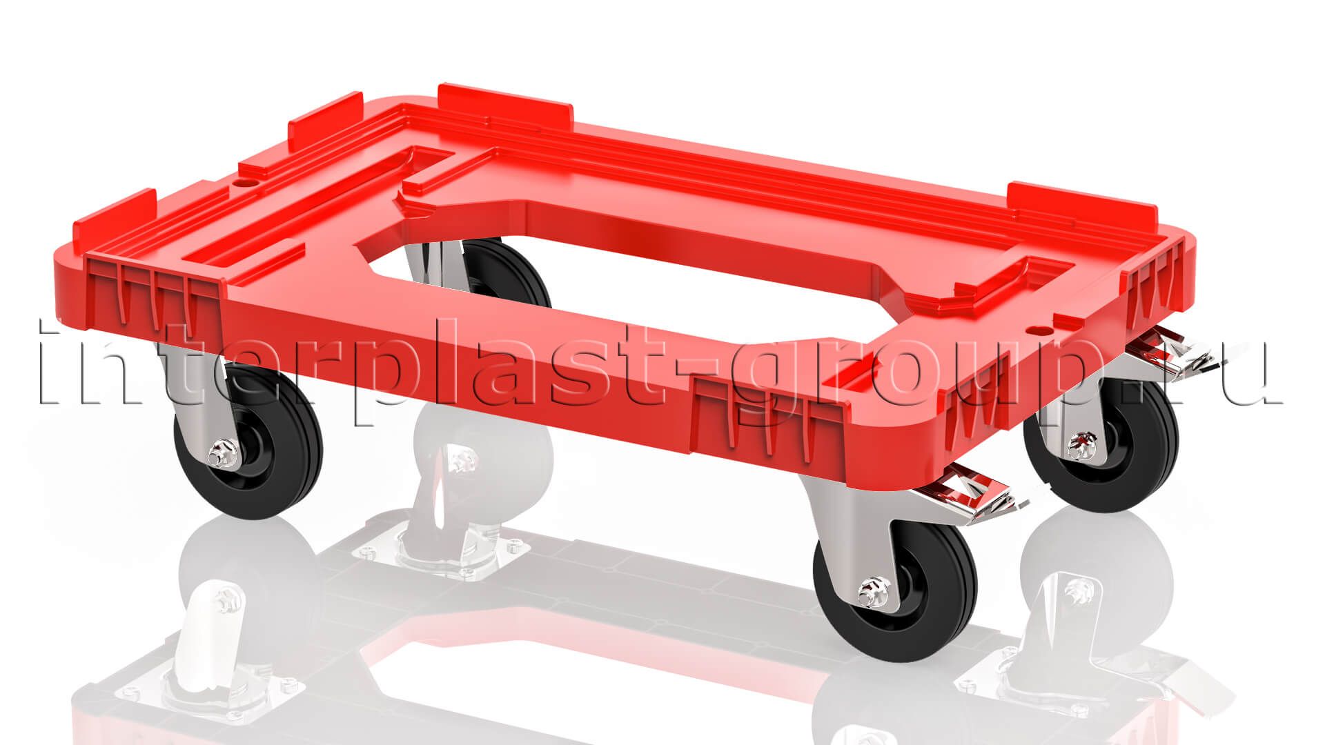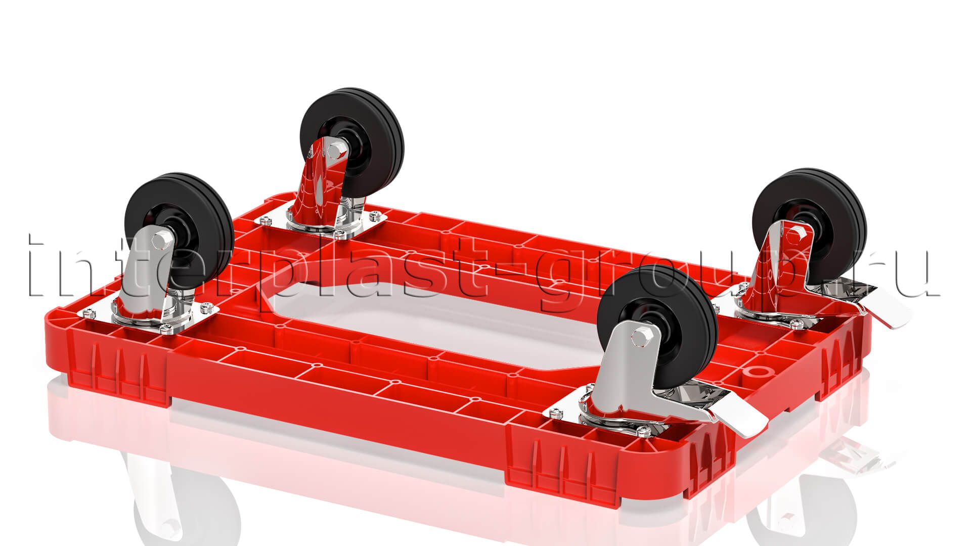 Тележка пластиковая с отверстием 2 колеса с тормозом красная в Новороссийске