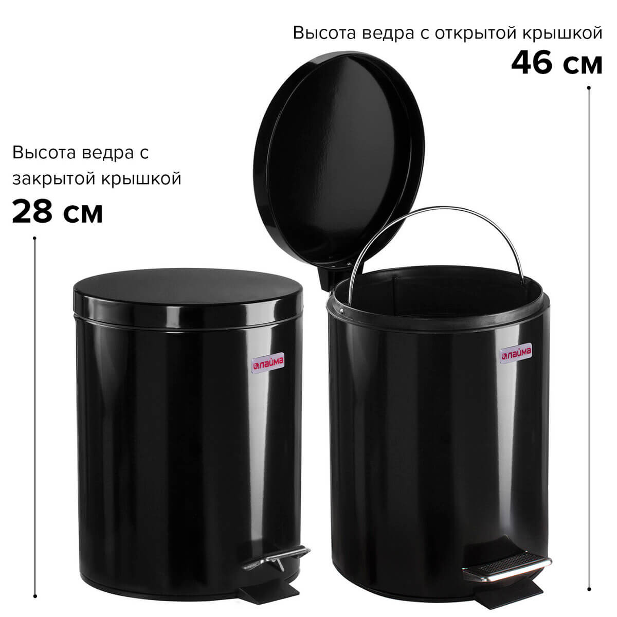 Ведро-контейнер для мусора (урна) с педалью LAIMA Classic, 5 л, черное, глянцевое, металл, со съемным внутренним ведром