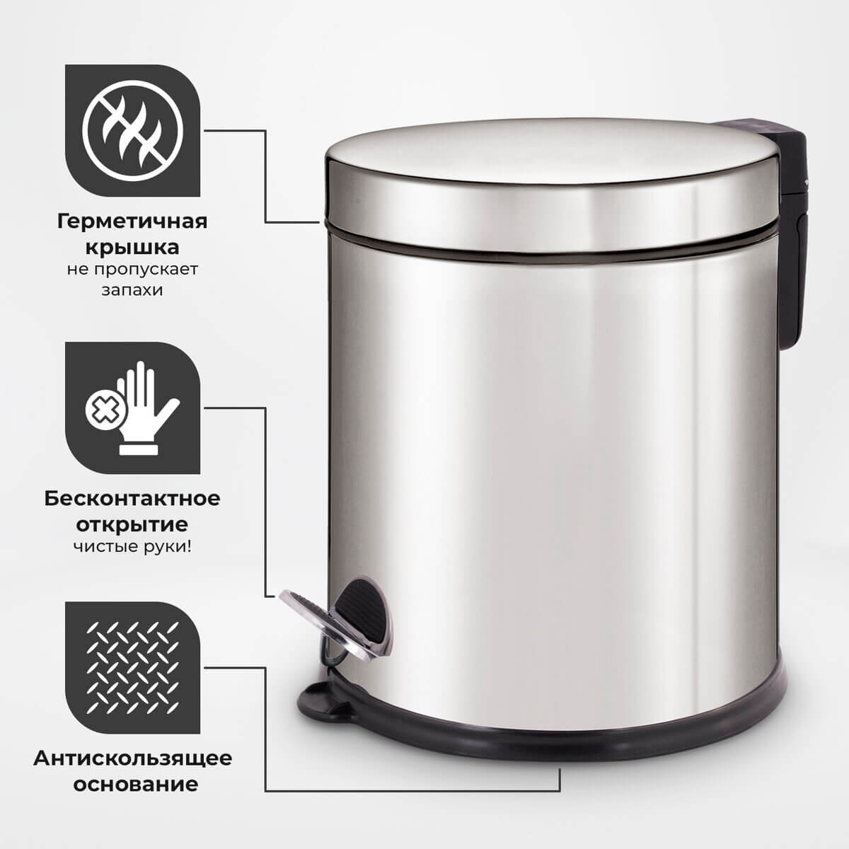 Ведро-контейнер для мусора урна с педалью LAIMA Classic Plus, 5 л, зеркальное в Новороссийске